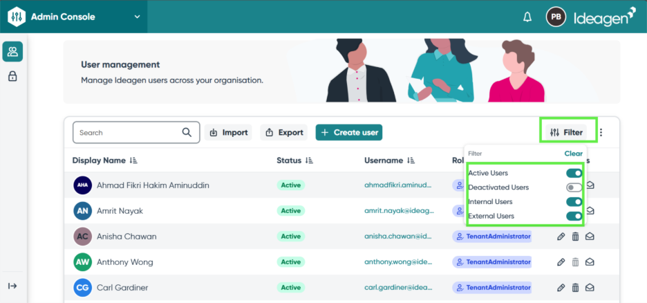 Tenant Administrators responsible for managing users in Ideagen Hub.