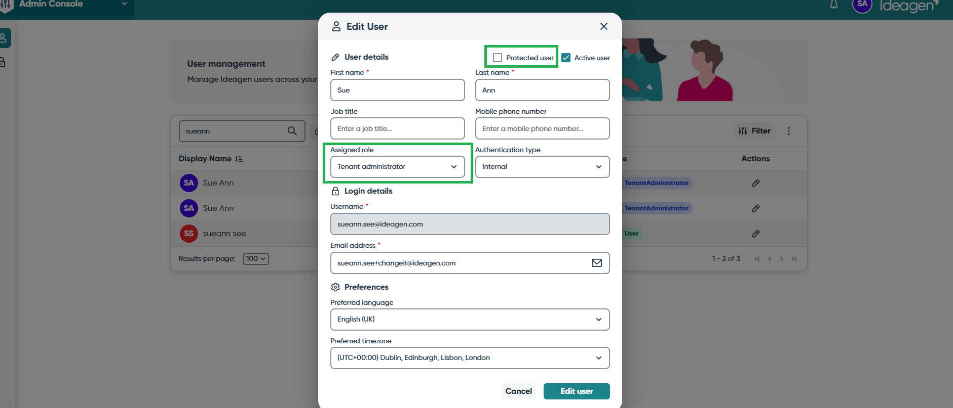 - Click Edit user to save changes.