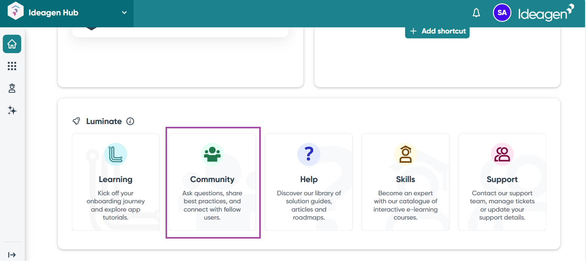 Users looking to access solution support resources through Ideagen Hub.