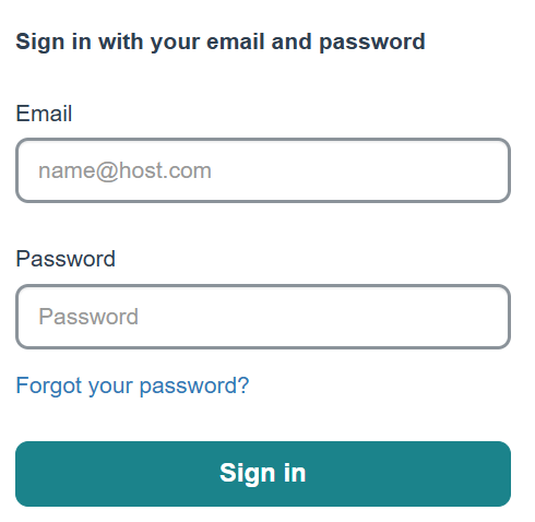 Email login screen Username login screen - Enter your Email if you are using an email-based sign-in method.