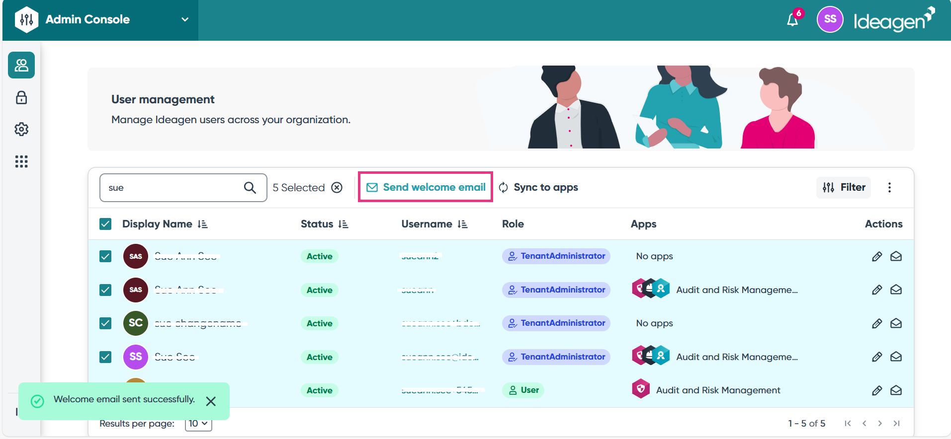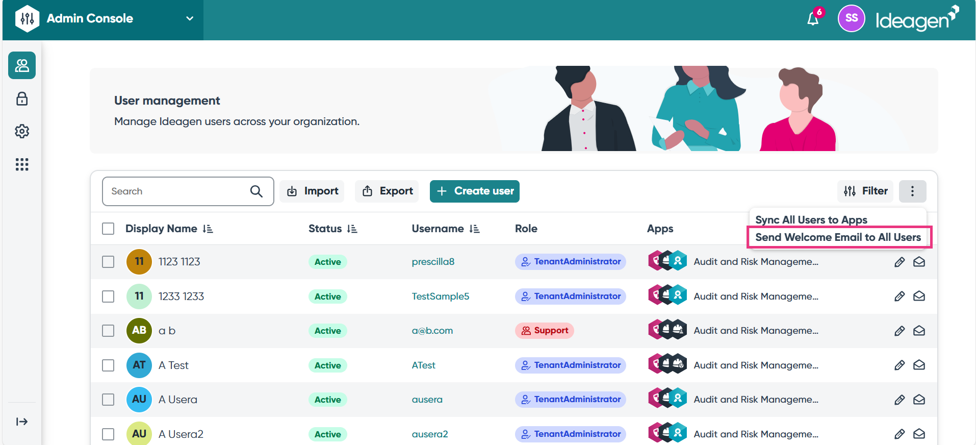 For customers set up before Release 6.0.0 (3 February 2026), welcome emails are automatically sent to all active users when created in Ideagen Hub, maintaining previous behaviour.