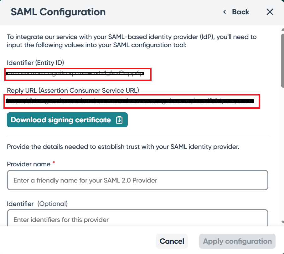 3. Configure Ideagen Hub (Cognito) as the Service Provider